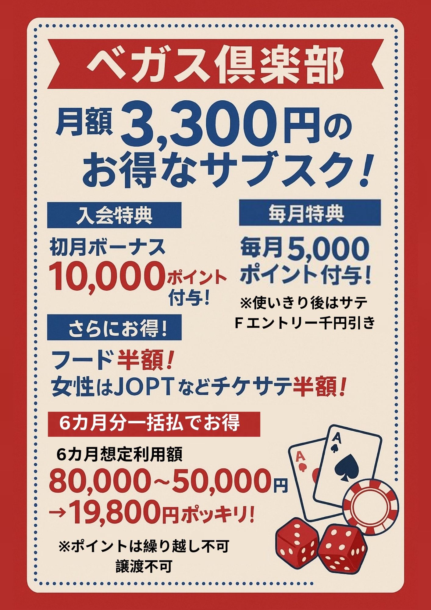 お得が満載のベガスCULB‼︎良いこと尽くめのベガスCULB‼︎